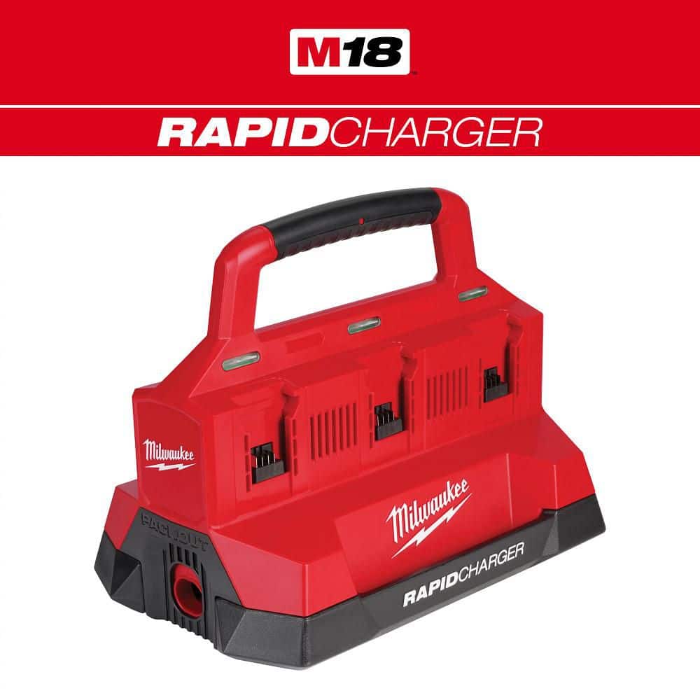 Milwaukee M18 PACKOUT Six Bay RAPID Charger: charges two batteries quickly, supports PACKOUT, six bays, USB-A port, wall-mountable, reduces downtime.